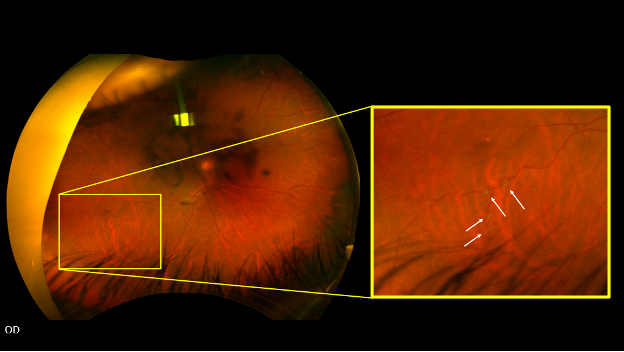 - 44-year-old man reports floaters and blurry vision OU for 5 years